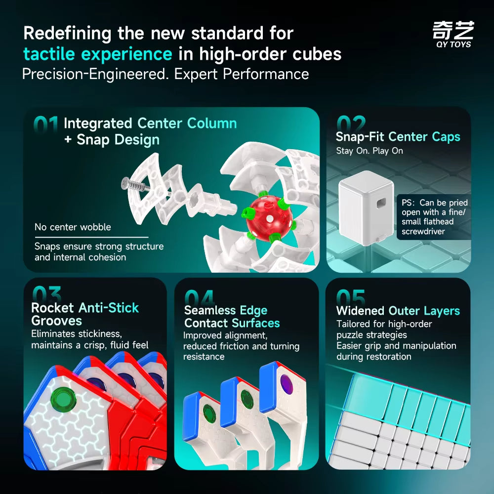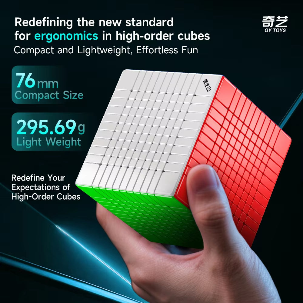 The QiYi 11x11 M Ball Core redefines what’s possible in high-order speedcubes. With its ultra-compact 76mm frame and lightweight 295.69g build, this 11x11 shatters expectations—not just in size, but in ergonomics, aesthetics, and performance. Featuring an all-magnetic ball core system, enhanced grip design, and seamless engineering, it's built for serious solvers who want power, comfort, and style in one stunning cube. Smaller than many 10x10s, it’s a game-changer in every dimension.