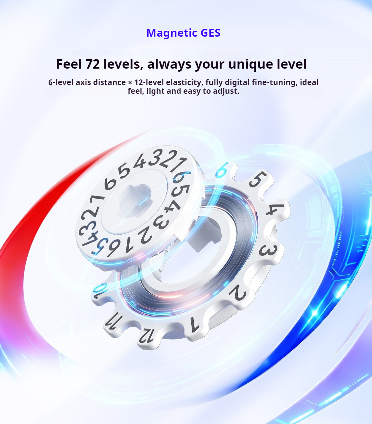 6 axis distance levels × 12 elasticity levels for fully customizable handfeel tuning.