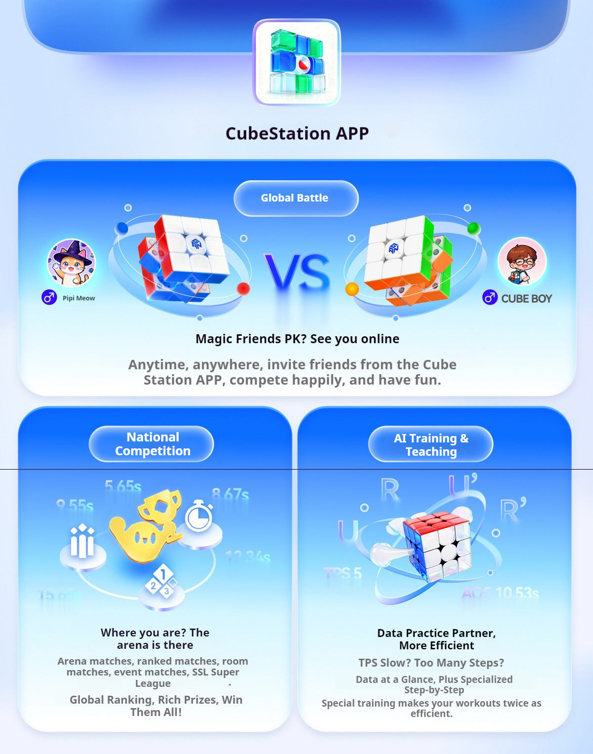 Powered by GAN’s All-Support Spherical Track Structure and 76-Point Magnetic Positioning System, the i4 MagLev offers smoother startup, cleaner recovery, and more stable high-TPS control. With Dual-Mode Battery Intelligence (30h / 200h) and 10-Minute Fast Charging, it’s engineered for competitive training, online battles, and long-session performance without interruption.